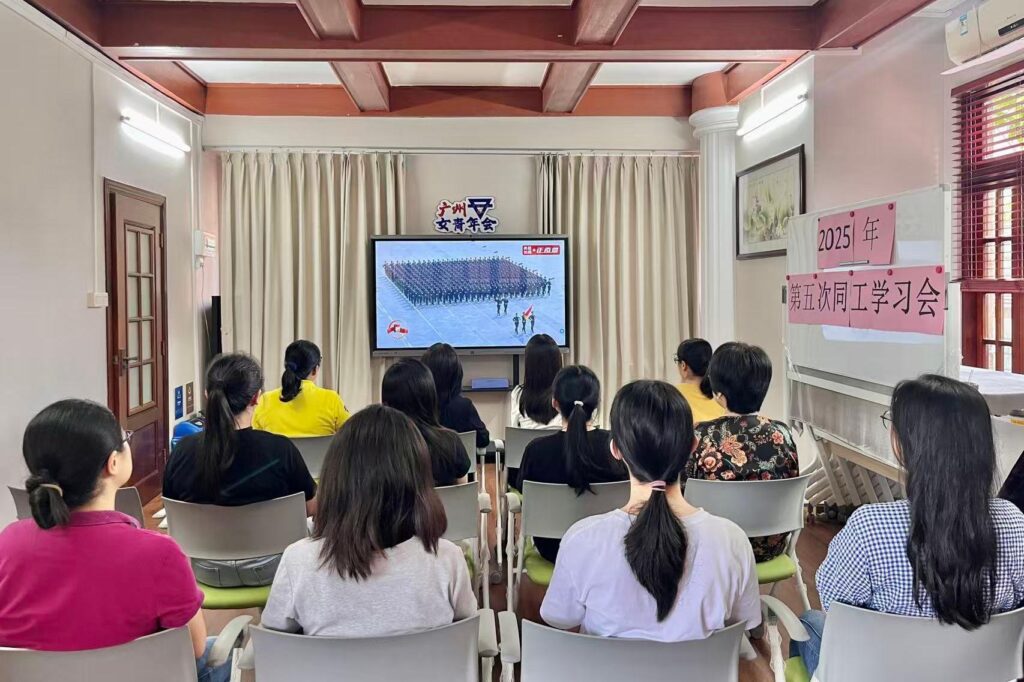2025年9月3日,广州基督教女青年会召开第五次同工学习会,组织全体同工集中收看纪念中国人民抗日战争暨世界反法西斯战争胜利80周年大会。同工们跟随直播镜头,共同回顾那段烽火岁月,缅怀革命先烈,感受强国强军的时代脉动,接受了一次深刻的爱国主义教育和精神洗礼。