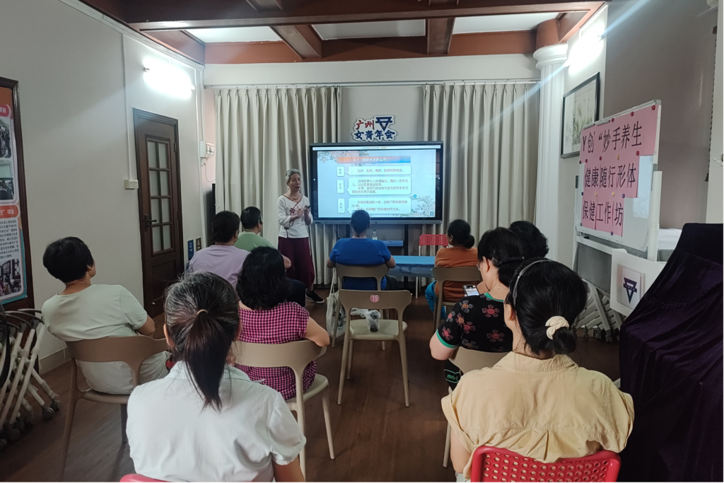2、9月11日和25日,女青年会在鹤洞会所一楼大厅开展了两节“妙手养生,健康随行”形体保健工作坊,通过学习按摩、刮痧的相关知识及手法,让会员掌握实用的自我保健技能,有效增强健康意识。活动共有16人参加,服务了25人次。