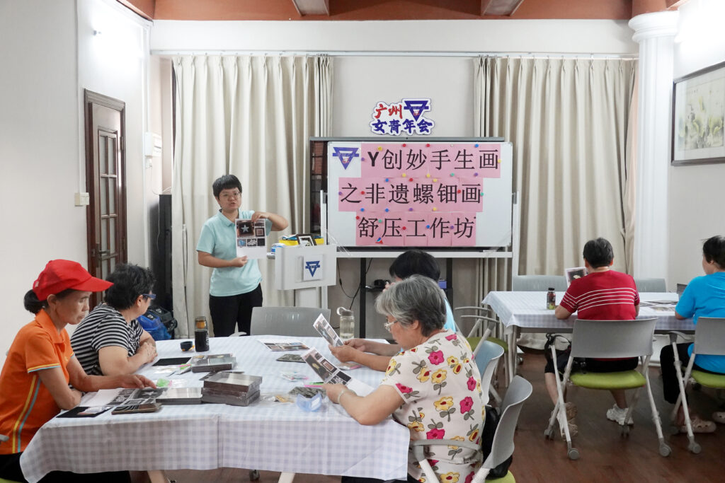 2、10月16日上午,女青年会在鹤洞会所顺利举办“妙手生‘画’之非遗螺钿画舒压工作坊,以非遗螺钿画制作为载体,让14名参与者在感受传统手工艺的独特魅力过程中,排解日常照护工作中所积累的心理压力。